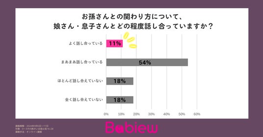 - 家族(孫の両親)とのコミュニケーション:孫とのかかわり方について、家族とよく話し合っていると回答したのはわずか10%