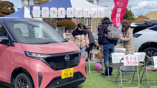 ~電気で元気に!福島日産エリアでは日産サクラから給電し、日産ネイルプリント・シャボン玉・バルーン配り~