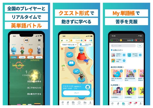 高校受験コース、大学受験コース、英検(R)コース、TOEIC(R)コースの全4コース、合計11,300語を収録しており、旅行や日常で使うレベルの英単語から、資格試験、留学、ビジネスで使う高難度の英単語まで全てを網羅しています。音声読み上げ機能もあり、発音も覚えることができます。高校生向けの大学受験コースだけではなく、TOEIC(R)コースや英検(R)コースなど、他コースで獲得したBPも大会で活用できますので、卒業生の方も安心して参加いただけます。