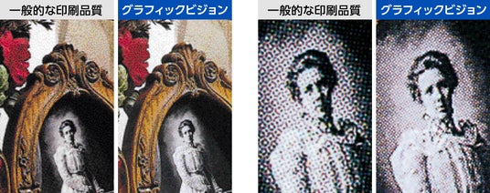 一般的な印刷品質とグラフィックビジョンの仕上がり比較