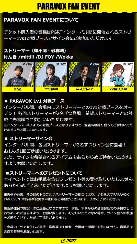 PGRTのインターバル間には、「PARAVOX1vs1対戦ブース」及び「ストリーマーサイン会」も実施!
