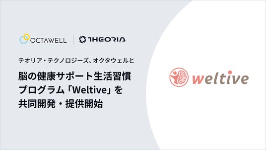 テオリア・テクノロジーズ株式会社(本社:東京都千代田区/代表取締役CEO:坂田 耕平、以下 テオリア)は株式会社オクタウェル(本社:東京都渋谷区、代表取締役:高木 鈴子、以下 オクタウェル)と締結した共同開発・事業提携契約に基づき、働く世代の脳の健康を多角的にサポートする脳の健康に良い生活習慣プログラム「Weltive(ウェルティブ)」の提供を本日より開始しました。