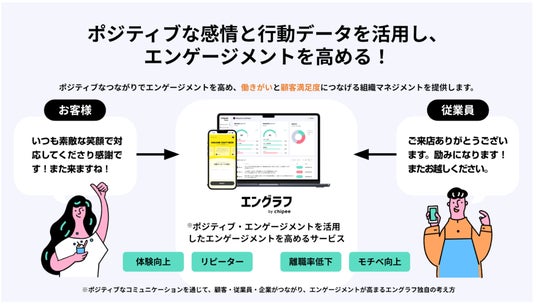 「こころとこころをつなぎ、世界を思いやりで満たす」をパーパスに掲げ、ウェルビーイング経営の実現を支援する株式会社チッピー(代表取締役:山崎令二郎)は、顧客のポジティブな感情と行動データを活用し、つながりを生むことで、顧客と従業員のエンゲージメント向上を支援するサービス「エングラフ」を提供しています。