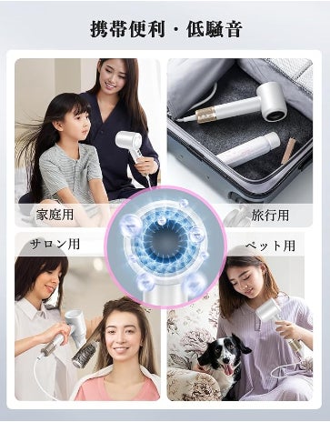 ハイスピードドライヤーは、高濃度2億マイナスイオン機能を搭載されて、髪に潤い、静電気を軽減し、髪を保護し、光沢のある髪を与えます。
