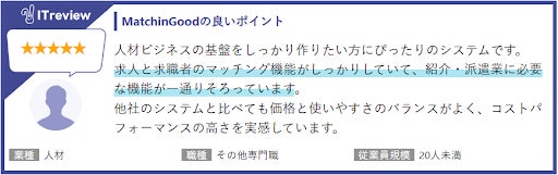 その他「MatchinGood」のレビューは以下でご覧いただけます。