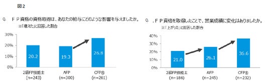 ■CFP資格は、給与や営業成績といった実利の点において、AFP資格や2級FP技能士を大きく上回る。(図2)
