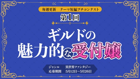 各テーマの募集期間は2週間、全7回を予定しており、第1回のテーマは〈異世界ファンタジー〉ジャンルから「ギルドの魅力的な受付嬢」です。
