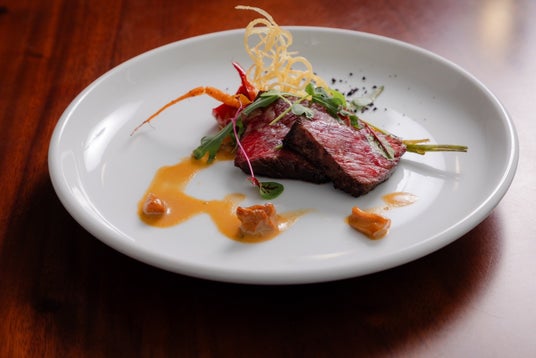 近江げんさん牛のグリル ルッコラと赤ワインのソース 伊吹大根を添えて