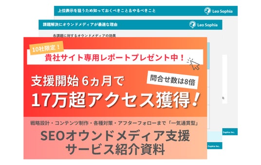 株式会社Leo Sophiaでは集客に課題のある企業様へSEOオウンドメディアの運用支援を行っております。