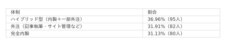 SEOオウンドメディアの運用体制は『ハイブリット型』が多数