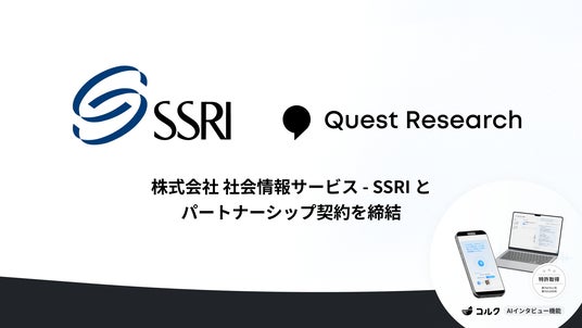 株式会社Quest Research(本社:東京都港区、代表取締役:南 健太)は、医療業界に特化した市場調査を展開する株式会社社会情報サービス(本社:東京都新宿区、代表取締役社長:牧田 孝、以下SSRI)とパートナーシップ契約を締結したことをお知らせいたします。