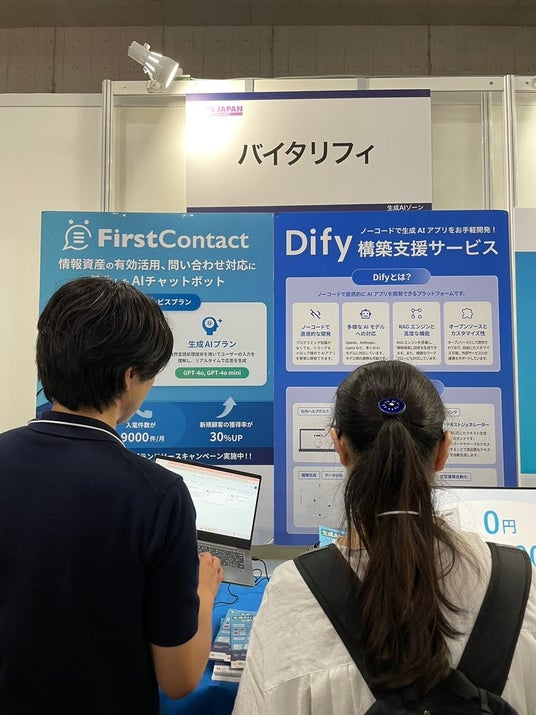 生成AIを活用したSaaSサービスの提供を行う株式会社バイタリフィ(東京都渋谷区、代表取締役:板羽晃司)は、2025年6月11日(水)~6月13日(金)の3日間、幕張メッセで開催された「APPS JAPAN(アプリジャパン) 2025 生成AIゾーン」に出展しました。