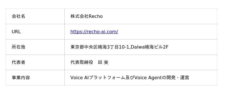 Recho AI Voice Agentは、人と同じように会話を「完結」できるAIプロダクトです。