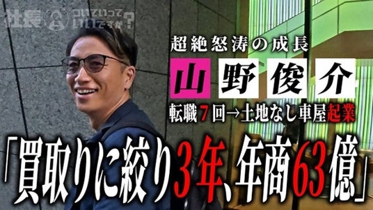 本動画は「起業3年で69億稼ぐ化け物に密着したら、車業界を理解した超新星だった」と題し、短期間で全国規模へと成長を遂げた代表・山野の1日に密着。車業界の実情やフランチャイズ経営の本質、事業拡大の裏側について、現場視点で語られています。