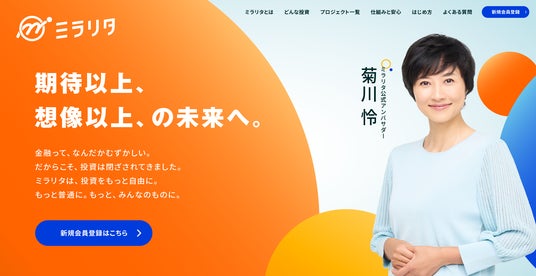 事業投資型クラウドファンディングプラットフォーム「ミラリタ」を運営するミラリタ株式会社(本社:東京都港区/代表取締役社長:重田恭宏)は、菊川怜を公式アンバサダーとして迎えることをお知らせいたします。