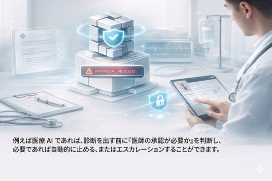 医療AIでの活用例:AIが勝手に判断せず、実行前に「医師の承認」という責任構造をプログラムレベルで固定する
