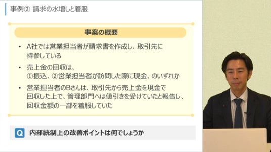 今回提供を開始するeラーニングは、内部統制の基本的な考え方を学習する「基礎から学ぶ内部統制」と、架空の事件を事例として内部統制構築のポイントを解説する「事例から学ぶ内部統制」で構成されています。