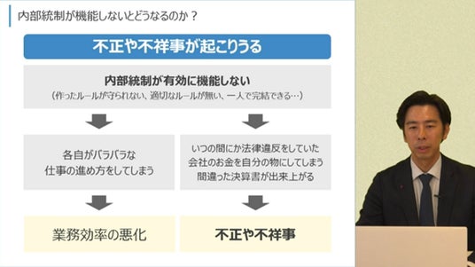 様々な内部統制が機能しなかった架空の事例を取り上げつつ、不正が起こるメカニズム、不正やミスを防ぐためにはどのような内部統制を構築することが考えられるのか、リスク対応コストとメリットの比較、内部統制を構築する上での実務的なポイントは何かといった点について解説します。