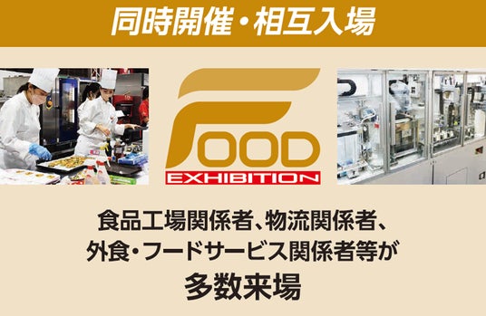 食の複合展『FOOD展2024』と展示会場をシェアすることで食品製造・流通業など、ものづくり業界とは直結しない関係者との交流も実現。他展示会にはない、新たなビジネスシーン開拓の可能性に期待が持てます。