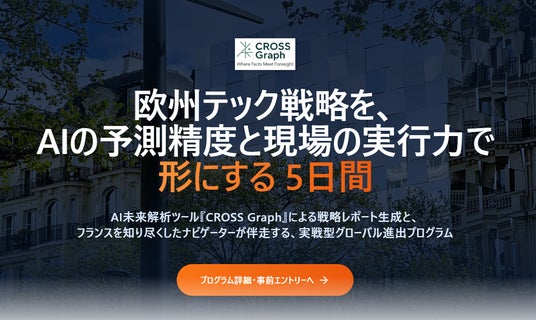 参加者には、当社独自のAI解析ツール「CROSS Graph」の2週間無料トライアルを特典としてご提供いたします。本プログラムを通じて未来予測を体感頂くことが可能です。詳細は、プログラム特設サイト( https://eu-tech-frontier.com/ )をご覧ください。