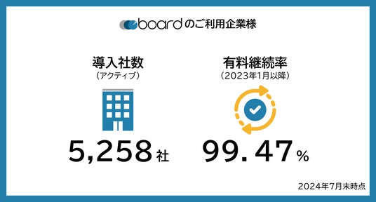 boardの有料登録をしてご利用くださっている企業やフリーランスの方は、2024年7月末時点で5,258社になりました。皆様のおかげで現在も増加中です。