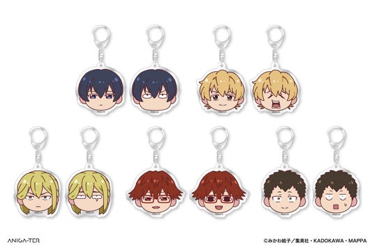 描き起こしイラストを使用した「清峰葉流火」「要 圭」「藤堂 葵」「千早瞬平」「山田太郎」の「通常顔」「ギャグ顔」のアクリルキーホルダー。