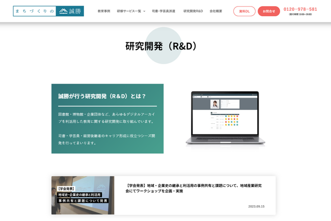 デジタルアーカイブの構築と利活用教育を手がける株式会社誠勝(本社:東京都新宿区、代表取締役社長:山本大視 以下誠勝)は2024年3月5日(火)に、「まちづくりの誠勝」ウェブサイト内にてデジタルアーカイブ利活用教育に関する研究開発(R&D)ページを公開しました。