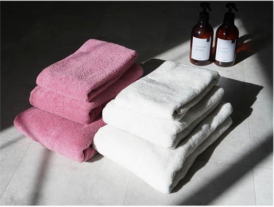 サイズおよびバリエーションはホテルサイズバスタオル、やや小さめバスタオル、フェイスタオルの3種類をご用意しています。