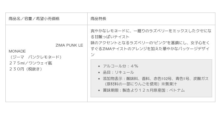 FNOでも注目の『ZIMA PUNK LEMONADE』は全国スーパーマーケット、飲料店他で好評発売中!*パーティーやイベントなどこれから迎えるホリデーシーズンを、『ZIMA PUNK LEMONADE』片手に是非楽しんで!