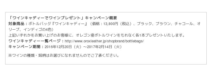 アメリカ・ポートランドのレザークラフトブランド“OROX LEATHER Co.(オロックスレザー)”の日本サイト「OROX LEATHER.jp(オロックスレザードットジェイピー)」 を運営するハッブル株式会社(本社:東京都中央区)は、ボトルバッグ 「ワインキャディー」を購入したお客様に、“OROX LEATHER Co.”の地元オレゴン産ボトルワインをプレゼントするキャンペーンを実施中です。