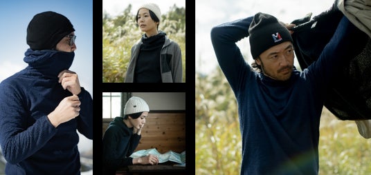 寒い中でのアクティビティにおいて、行動中は通気し快適に、静止中にはデッドエアを溜めて暖かく、アクティブに動き続ける人々を常に快適にサポートします。
