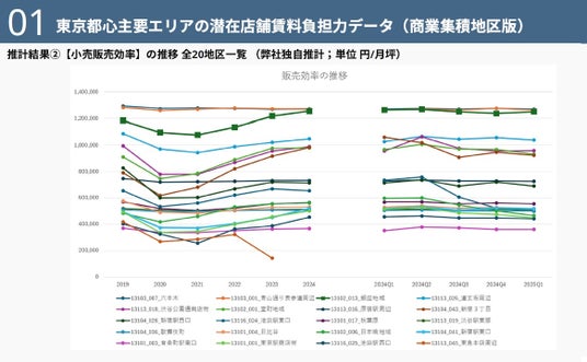 商業用不動産仲介事業を専門で取り扱っている株式会社ゼン・ランド(本社:東京都渋谷区、代表取締役社長 藤井善英、以下「当社」)は、商業店舗の収益性や賃料負担力の動向を追う指標として、経済センサスの「商業集積地区」をベースとした、東京都心商業エリアの潜在店舗賃料負担力データの2025年第1四半期版を公開いたします。