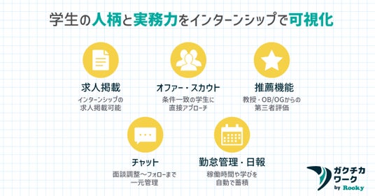 学生の人柄と実務力をインターンシップで可視化(求人掲載/オファー・スカウト/推薦/チャット/勤怠・日報)
