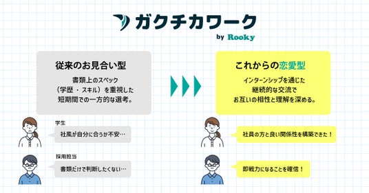 ルーキーワークス株式会社(代表取締役:中川 高一、以下 当社)は、インターンシップに特化したマッチングサービス「ガクチカワーク」(https://gakuchikawork.com/lp-b.html)を、本日、2026年1月10日(インターンシップの日)より全国で提供開始します。「インターンシップの日」は当社が制定し、「イン(1)ターン(10)」の語呂合わせから、インターンシップ制度の拡大と意識啓発を目的に1月10日を記念日として位置付けています。