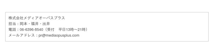 2017年1月4日設立、2月1日事業開始。学習塾・大学・出版社・一般企業などに学びの映像・Web コンテンツを制作提供する「Media Opus Contents+」、最新の AI、機械学習手法(ディープラーニング等)を活用した学びのデータサイエンス、 コンサルティングを提供する「Media Opus Knowledge+」を柱とする学びを科学するテクノロジー企業です。