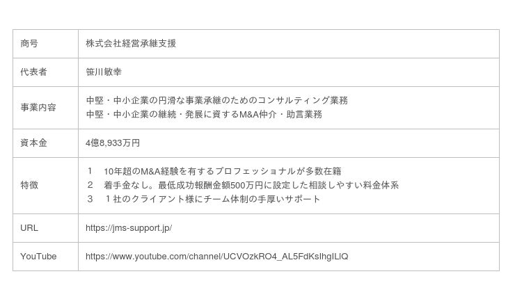 書籍の中にも書いておりますが、当社の特徴は、年商3億円未満の中小企業・小規模事業者のM&A仲介支援に強みがあり、10年超のM&A経験を有するプロフェッショナルが、着手金なしで、最低成功報酬金額500万円からと相談しやすい料金設定となっております。