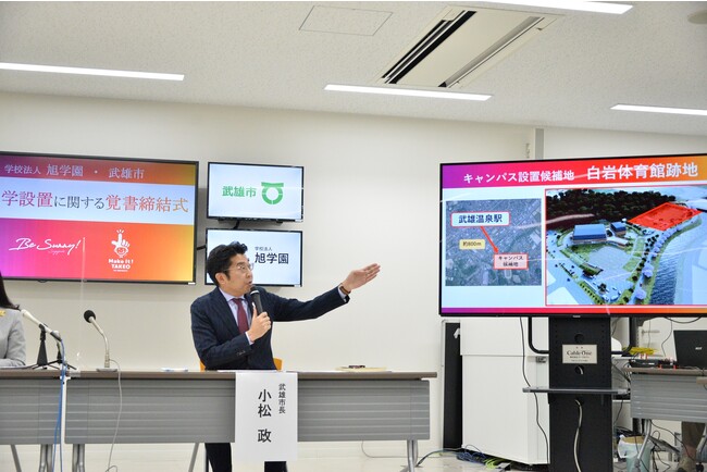 佐賀県西部エリアには大学が設置されておらず、子どもたちが夢を実現できる選択肢を増やしていくことが必要だと考え、市長2期目より学校誘致に積極的に動いてきました。武雄市で初めての大学設置を発表できて感無量です。旭学園様はじめ、関係者の皆様に心から感謝申し上げます。