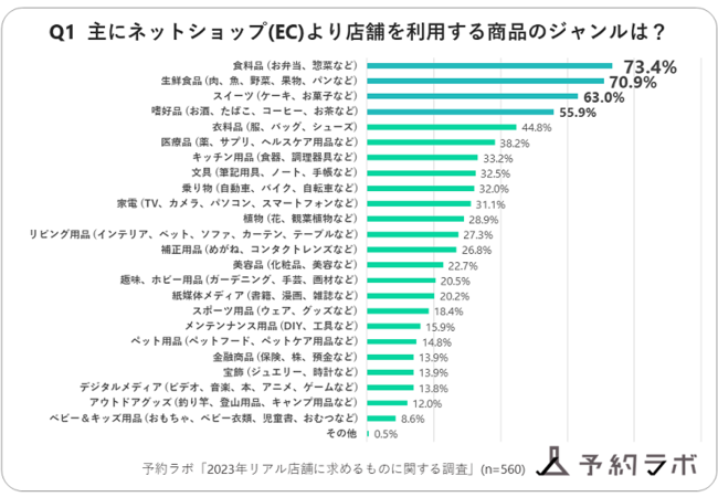 株式会社リザーブリンク(本社:東京都港区、代表取締役:井出勝彦、以下リザーブリンク)が運営する、日本で唯一の予約研究機関「予約ラボ(https://yoyakulab.net/)」は、2023年2月7日(火)に実店舗とECの利用状況や利用するジャンルなど「リアル店舗に求めるもの」についての調査を実施しました。