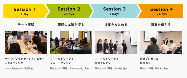 社会団体が抱えるリアルな課題に対して、複数の企業から参加する約60名のビジネスリーダーたちが、業種、業界問わず混成された複数チームに振り分けられ、3ヶ月間全4回のセッションを通じて課題解決を行います。多様性のあるチームでの体験に基づいたリフレクション相互フィードバックでリーダーシップ開発の支援を行います。