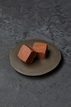 クルミとアーモンドのプラリネ、マロンペーストをミルクチョコレートでコーティングした新作のボンボンショコラ「オトンヌ」。秋の味覚を満喫できる贅沢な一粒です。