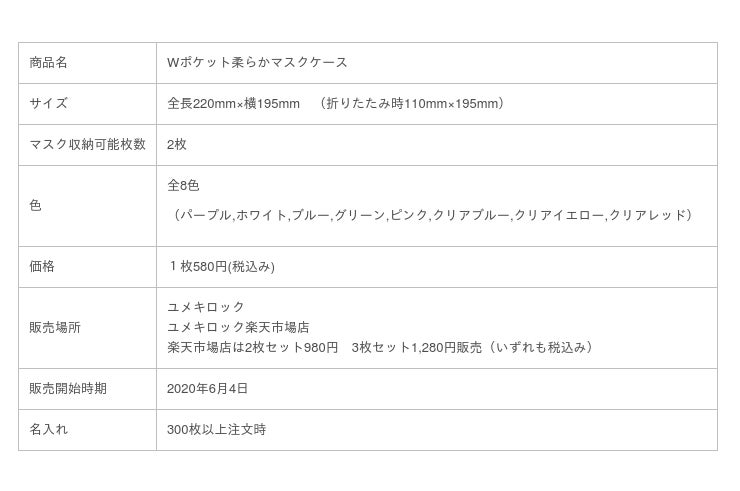 手帳製造・OEMを手がけて66年の伊藤手帳株式会社(本社名古屋市:代表取締役社長 伊藤 亮仁 以下当社)は、新商品「Wポケット柔らかマスクケース」を6月4日より自社ECサイト(ユメキロック楽天市場店)で販売を開始します。