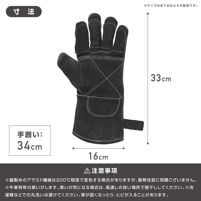 ~耐熱性の高い牛革を使用し、ダッチオーブンや焚き火台の運搬はもちろん、炭や薪もつかめる耐熱性が備わったグローブです。肘の近くまでしっかり保護するロング設計により、薪入れの安全性を高めます。~