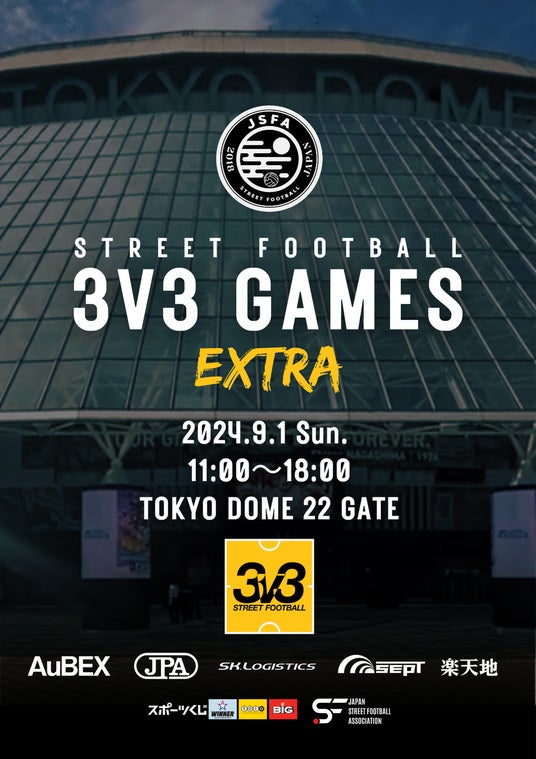2024年9月1日(日)一般社団法人日本ストリートサッカー協会は、東京ドーム22番ゲート前にて3人制のストリートサッカーイベント"3V3 GAMES EXTRA"を開催します。