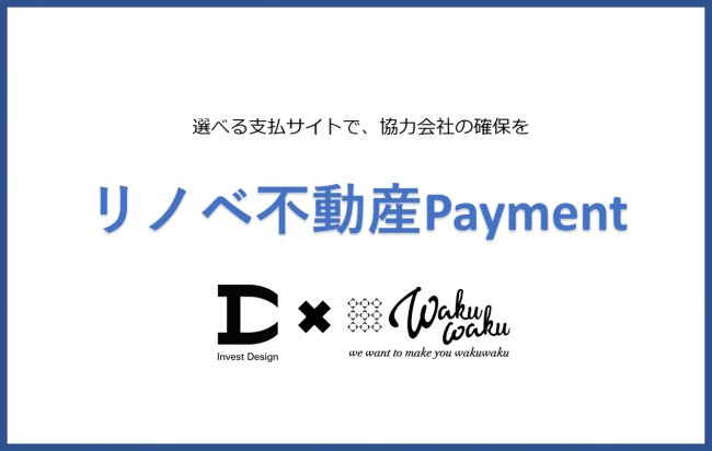 決済サービスを提供する、インベストデザイン株式会社(本社:東京都千代田区、代表取締役:高田悠一)は、ITとリアルを融合した中古住宅プラットフォーム構築をビジョンに掲げる株式会社WAKUWAKU(本社:神奈川県横浜市、代表取締役:鎌田友和)と提携し、工務店から協力会社への早期支払いを実現する「リノベ不動産Payment」の提供開始したことをお知らせいたします。