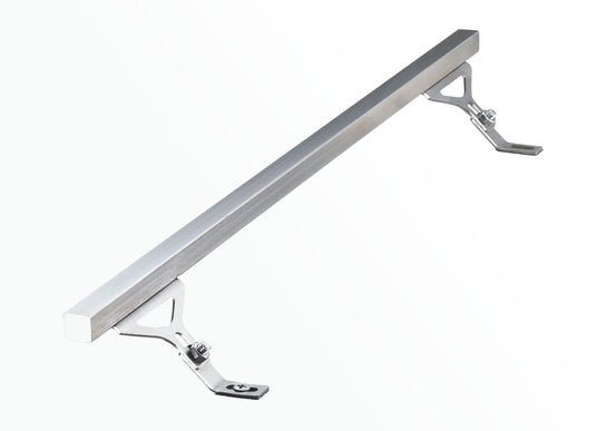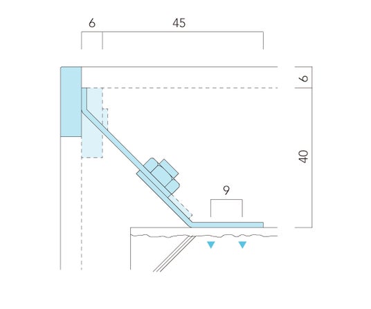 Previo G7 は、共用ブラケットのアーム角を45°とすることによって、必要モルタル厚を確保しつつ、あらゆる縦横比の角棒・フラットバーの埋込み施工を可能にした。