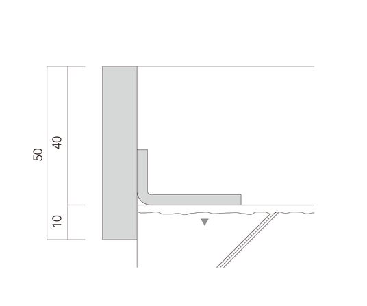 RC階段の段鼻に見切りを埋込む従来の施工法は、短冊状のプレートを折り曲げて本体に溶接し、これをコンクリート躯体にビス止めするものである(※下の右図)。しかしながら躯体の踏面(コンクリート面)はフラットに仕上げることが不可能であり、薄くモルタルでならしても、墨出し位置に見切りをそろえることはたいへん困難であった。