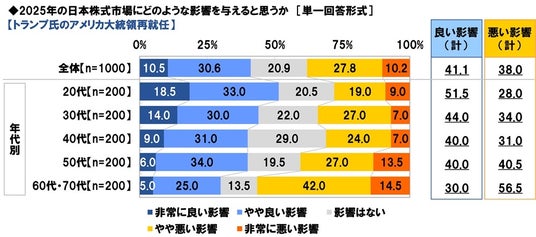 - “またトラ”が2025年日本株式市場に与える影響 投資経験者の41%が「良い影響」と予想