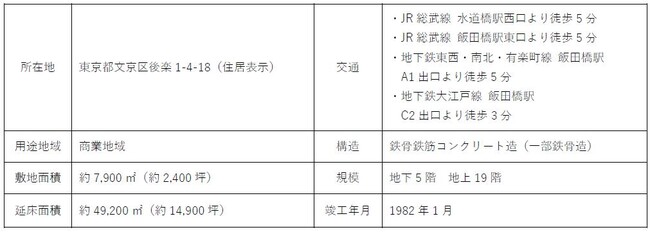 また、本物件の取得に伴い、当該建物名称を「トヨタ東京ビル」へ変更いたします。トヨタ自動車株式会社(本社:愛知県豊田市、代表取締役社長:豊田 章男)はリースバック方式で引き続き本物件を使用し、2023年6月からは公益財団法人日本サッカー協会(JFA)も本物件に入居する予定です。