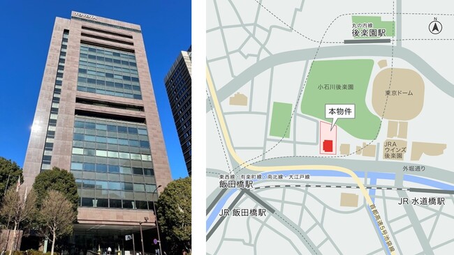 外堀通りに面する本物件は「飯田橋」駅と「水道橋」駅の中間に位置し、小石川後楽園に隣接しています。持分割合はトヨタ不動産株式会社90%、三井不動産株式会社10%で、両社はパートナーとして連携しながら本物件を運営して参ります。