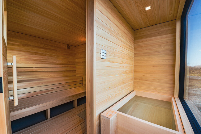 薪式サウナヒーターを備えたサウナトレーラーでは、薪の投入によって最高110℃までの温度調整が可能。熱したサウナストーンに水をかけて水蒸気を発生させる「ロウリュ」もお楽しみいただけます。またトレーラー内には檜造りの水風呂も完備しています。